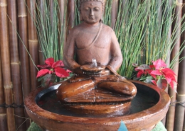 These indoor water features are usually rectangular and hang vertically or horizontally from the wall. Each has a small, hidden reservoir on the bottom, which houses the pump that recirculates the water. Indoor wall fountains are available in various sizes and with one or three panels. Fiberglass, resin, stone, copper, stainless steel, etc., are among the materials used to create wall-mounted fountains.